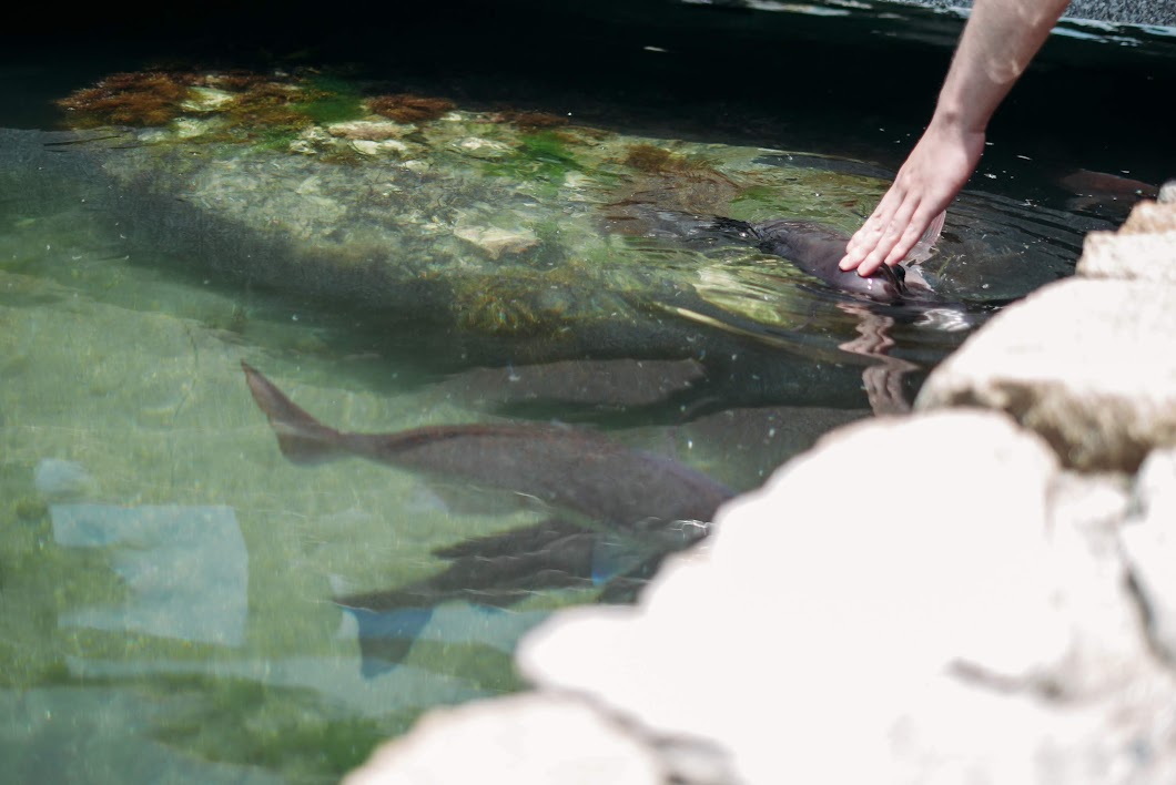 在河中遇到了這尾不知名魚兒,工作人員會在餵食後接觸牠的頭,可能是喻意好運吧﹗