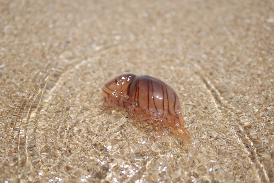 因為小豆島四面環海,你去到哪都能望得到一片片迷人的海灘,走近沙灘一看,環顧四周你能看到這些貌似水母的物體,乾的、濕的、活的、沒有靈魂的、透明的、棕色的、或被海浪打上岸的,雖然不知道牠們到底是不是水母,但牠們令我不禁想起「崖上的波兒」,也許是我想像力過於豐富就是了⋯⋯